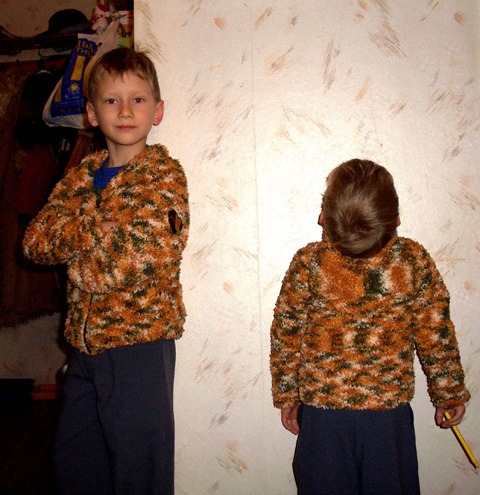 А младший, как всегда дурит... И потом просит - покажи, какая мордочка у меня получилась? И где уж тут мордочка...19 января 2006 г.