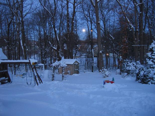 Снегопад, ночь, наш двор