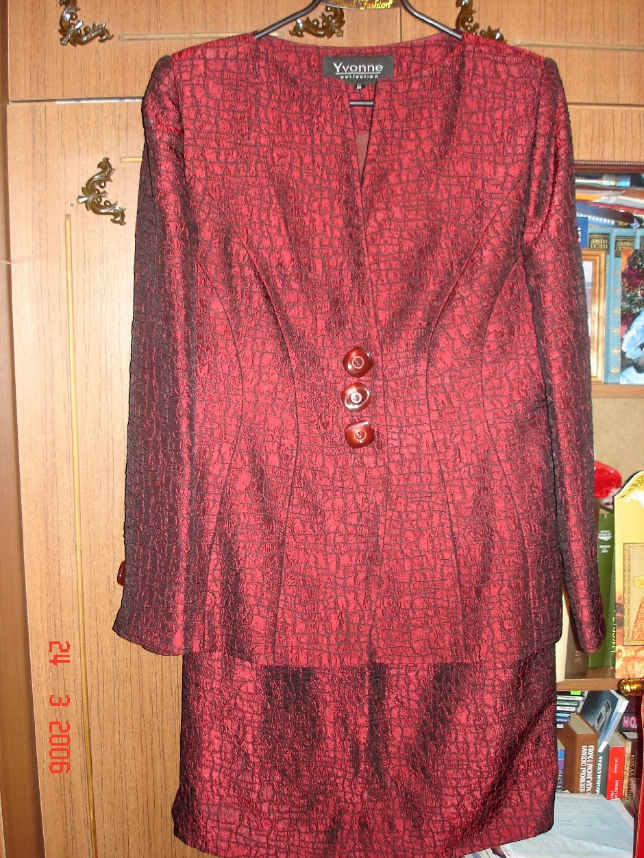 Костюм женский бордовый. Р-р 48. Пиджак рукав длинный, юбка 02 апреля 2006 г.