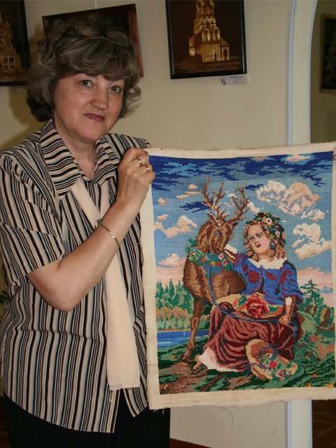 Наталья Алексанровна демонстрирует работу из "семейного архива".17 июня 2006 г.