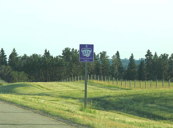 В прошлом году летом наша провинция праздновала 200 летие основания. По этому поводу в нашу провинцию и в наш город (Кадгари) приезжала с визитом английская кололева. Она тоже ехала по этой дороге. Такие знаки расставлены по всей трассе, связывающей Эдмонтон (столицу нашей провинции) и Калгари.04 июля 2006 г.