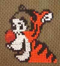 Тигра ждет своего часа. Я вышивала его на прогулке, во время обеда, по ночам... Схемы распечатанной не было - смотрела с экрана компьютера и (сама придумала) с ЖК фотоаппарата!21 июля 2006 г.