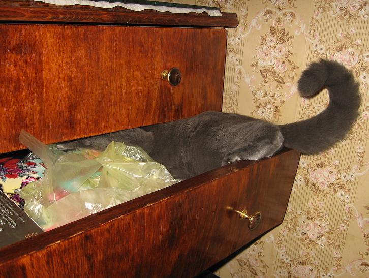 Дуся проверяет ящик с моими вышивальными богатствами :-)27 сентября 2006 г.