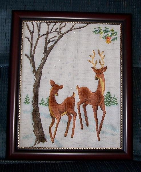 Это итальянский дизайн из журнала.Размер дизайна 20х25 см. Очень легко вышивается, хорош для подарка.Жаль, что на фотке не видно всех деталей этой вышивки, я добавила серебристый металлик и весь снег переливается, в живую очень красиво, особенно вечером, при освешении, вся картинка играет, переливается - красота :)16 ноября 2006 г.
