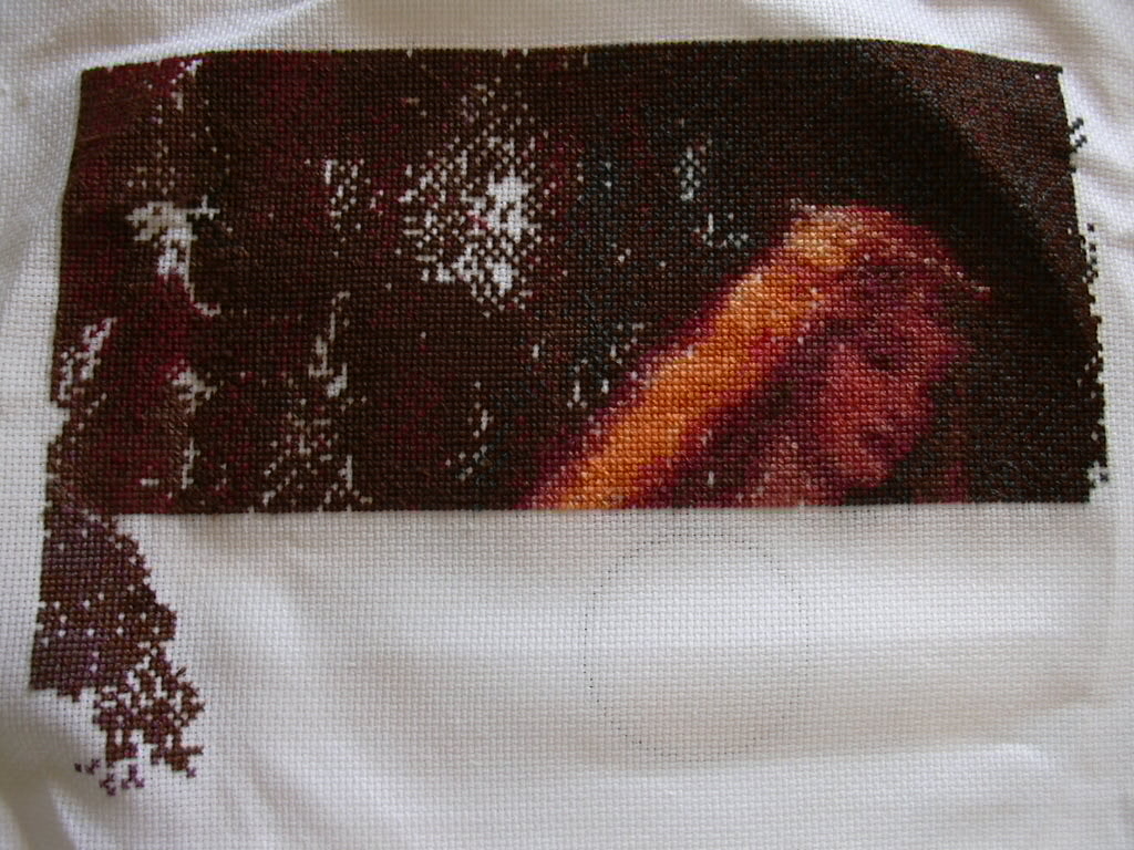 Вот так выглядит моя вышивка на данный момент. Очень понравилось, как выросовалось лицо - хотя было довольно трудно, но получается интересно и красиво...19 декабря 2006 г.