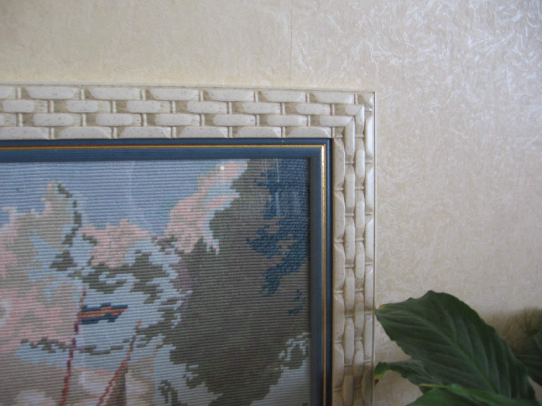 Оформление получилось необычным и неожиданным. Мастер предложила синюю внутреннюю планку, чтобы выделить море и светлую внешнюю "плетенку", чтобы оттенить облака. Вышивка зрительно расширилась и заиграла. 05 февраля 2007 г.