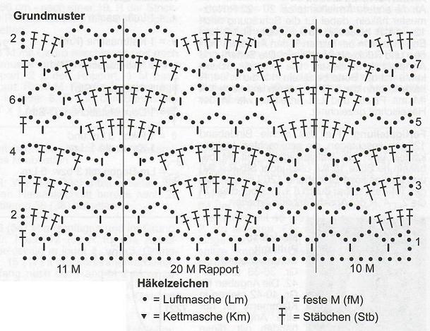 Низ я обвязывала по этой схеме. Раппорт - 20 петель. У меня вышло пять рядов, но можно делать сколько душе угодно.07 марта 2007 г.