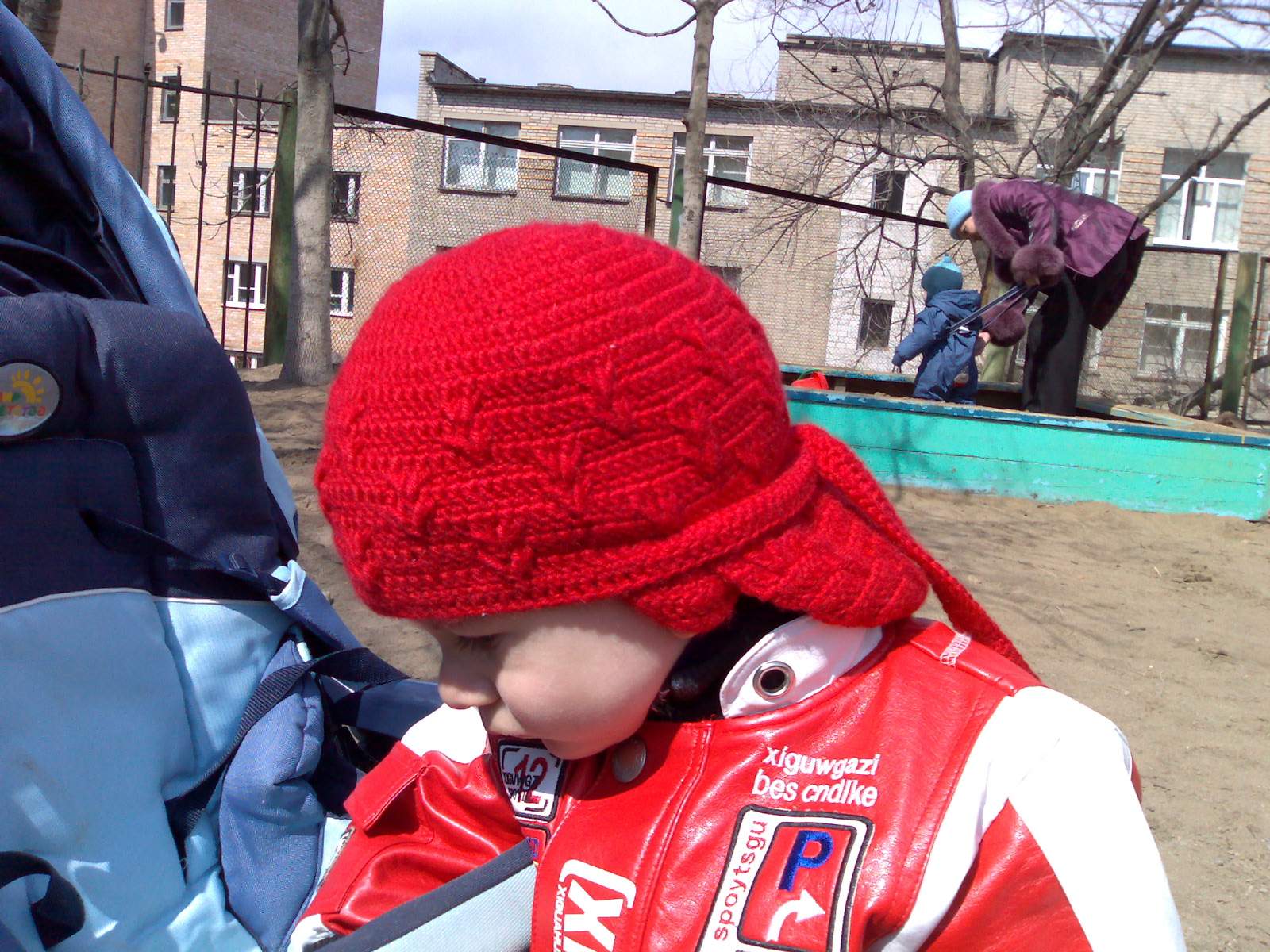Пришлось поднавязать ушки, правда всё равно открываются. Свяжу тоненькие шнурочки, так чтобы под подбородком завязывать. За счёт шарфа их всё равно видно не будет и вид банданы не испортится.03 апреля 2007 г.