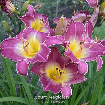 КОРТ МАГИШН. 5" EM-Ev TET крупный темно пурпурный со светлым лиловым глазком переходящим в желтое горло; гофрированный по краю лепестков очень тонкая светлая каемочка; в коллекции с 94 года; шедевр для своего времени!