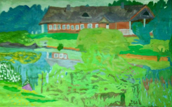 За рекой. (гуашь)