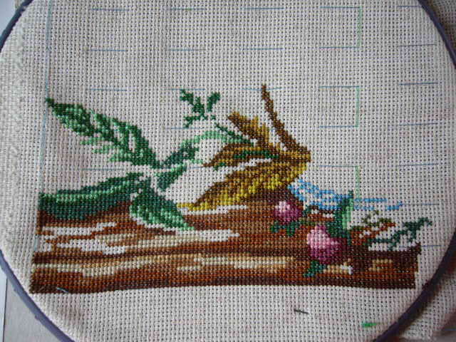 процесс вышивания пионов