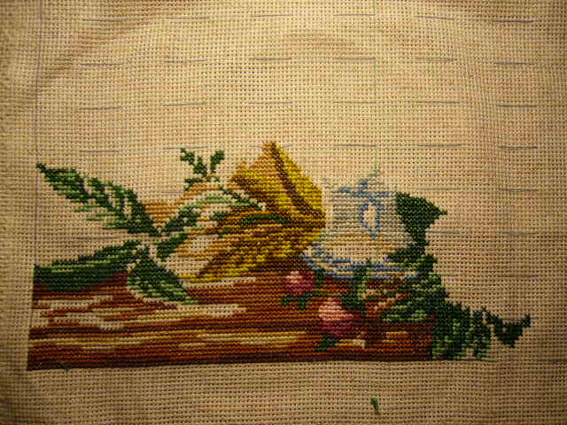 процесс вышивания пионов