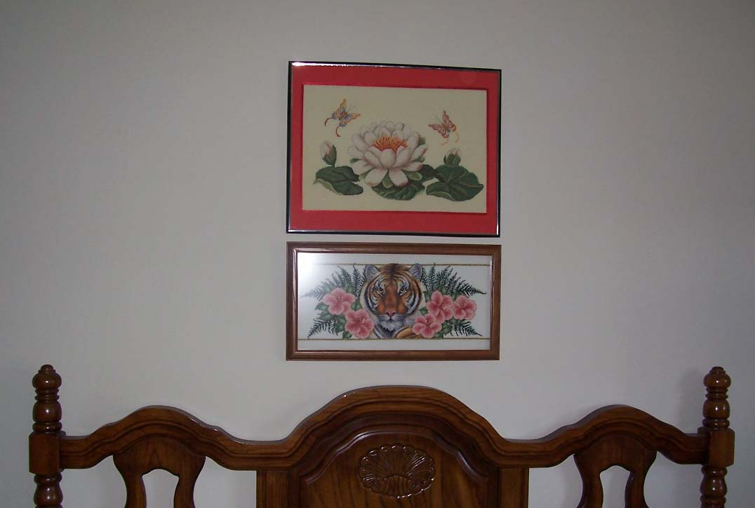Вышитые работы над кроватью. Мои работы в интерьере