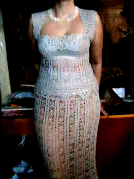 Это весь костюм, вязала из ниток лен с лавсаном, в бобинах по 1100 г, очень тонкий. Крючок 1,4-1,704 января 2008 г.