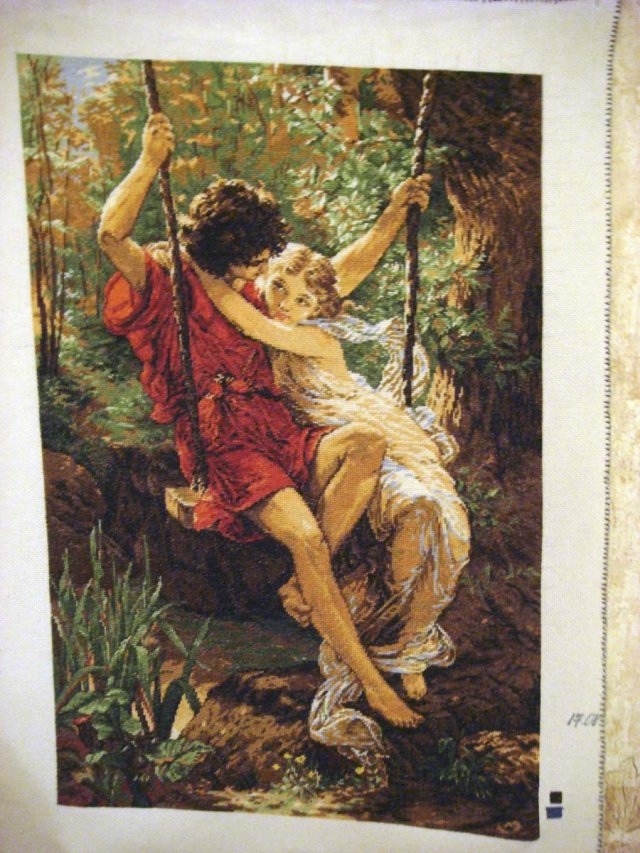 Вышита на белане в 2 нитки, цвета на глаз подобраны и схема кое-где переделана (мне там цветочек в левом нижнем углу не понравился почему-то и потом на поясе у мальчика кусочек переделан )26 февраля 2008 г.