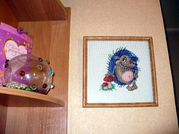 Ежик, общий план. Вышивка