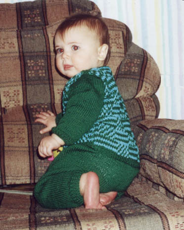 Полочка и спинка связаны крючком, а рукова и штанишки - спицами.13 ноября 2003 г.