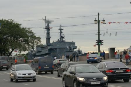 Кажется, что корабль едет по улице. Питер