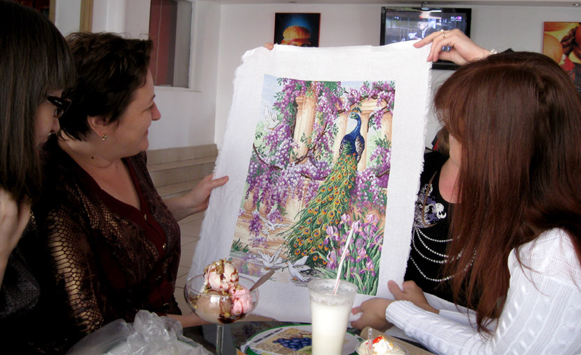 Лена и Надя с наташиным павлином - шикарная птица!21 сентября 2009 г.
