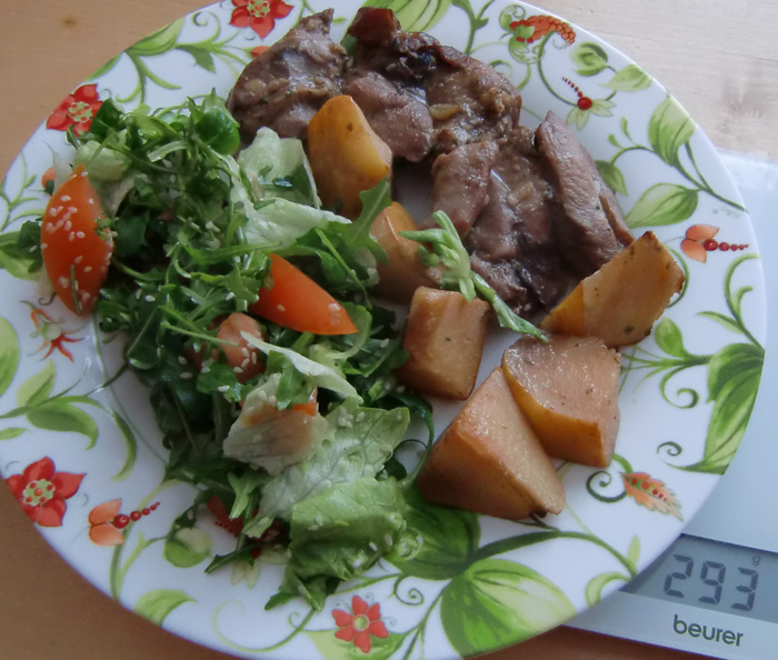 Впечатлилась блюдом HomaUfa и тоже решила попробовать! Ну очень вкусно, айва просто медовая получилась.Никогда раньше не пробовала печеную айву. В качестве гарнира салатик из силоса (рукола, корн, айсберг, половинка помидора и чайная ложка кунжута) Бедро индейки порезала на небольшие кусочки, мариновала в пряных травах для курицы примерно час. Запекала 40 минут при температуре 200 градусов. Натюрморт забыла полить соусом из оливкового масла, молотого перца, клюквы с медом и бальзамика.