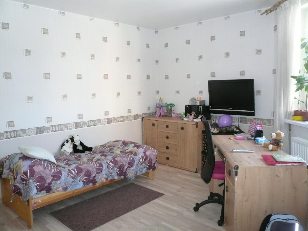 Комната дочери – не правильной формы. Скожен угол один и на этой стене окно...