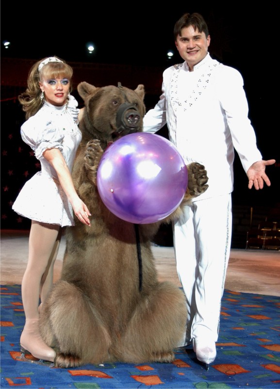 Дрессерованный медведь . Дрессированные животные