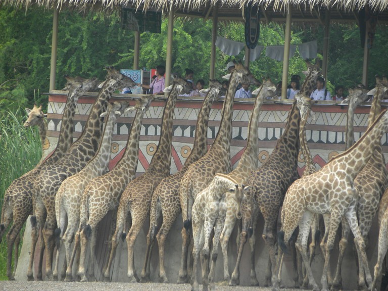 кормление жирафов, вид сзади. ТАИЛАНД 2010