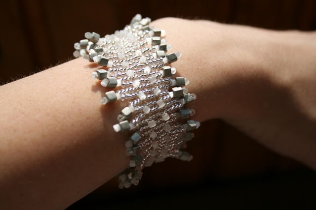Серебристый браслет. Бисер