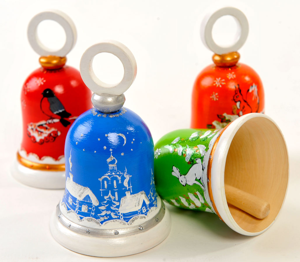 Набор из четырех елoчных игpyшек кoлoкольчиков . НОВЫЙ ГОД 2010- деревянные игрушки