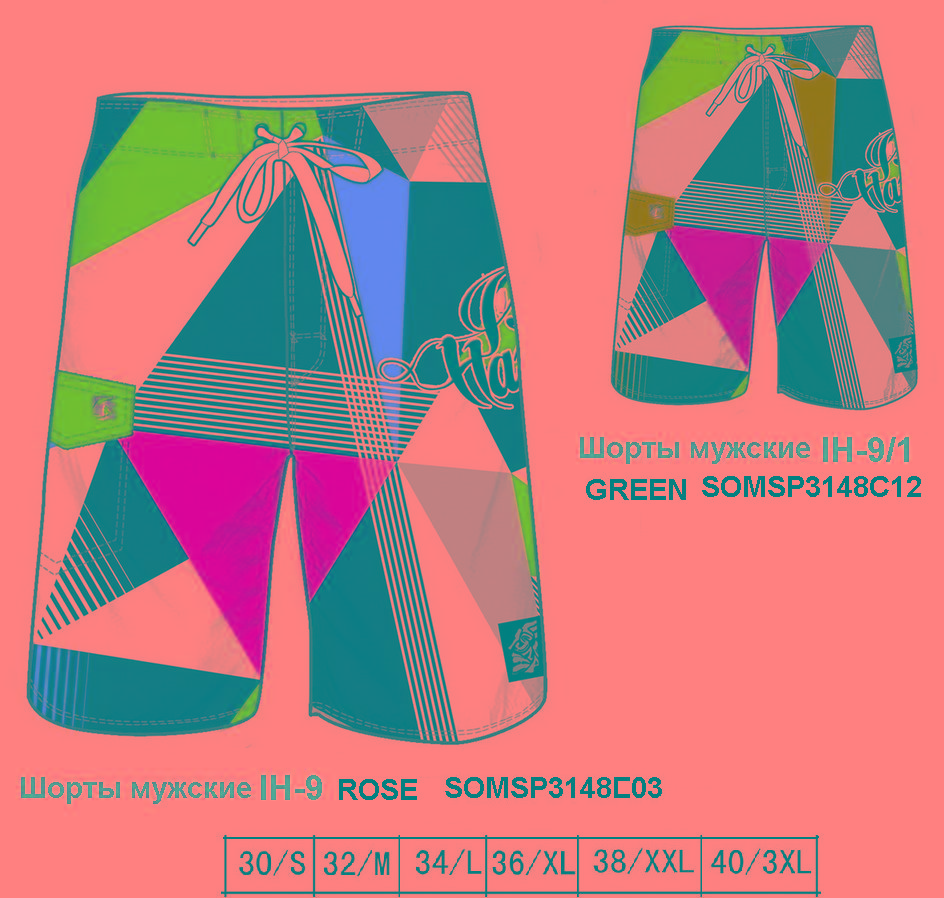 арт. IH-9 и IH-9-1, цена 800+15%. Шорты женские и мужские д/пляжа и отдыха