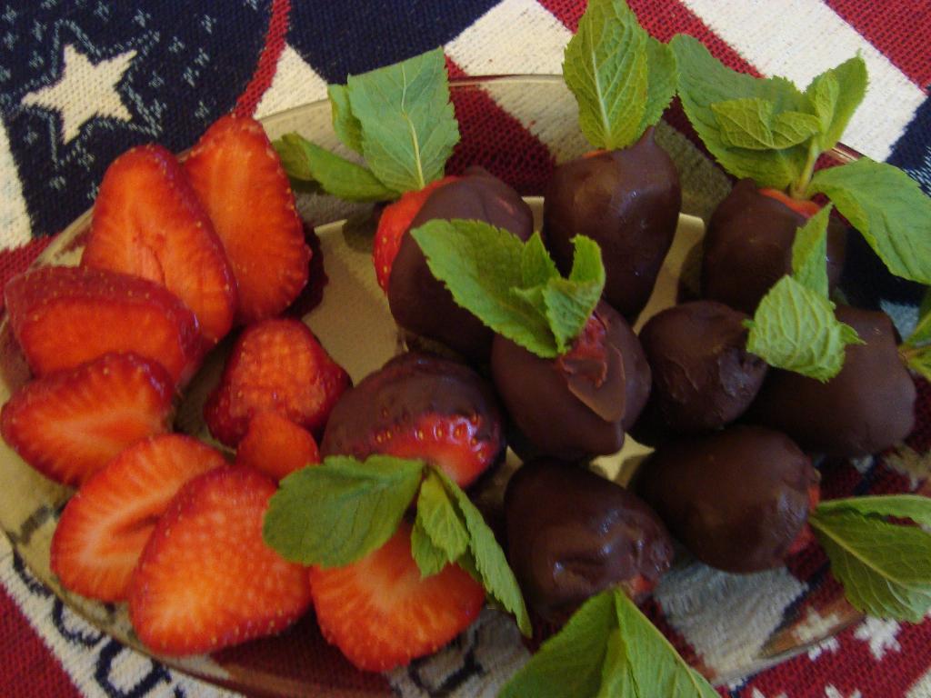 клубника в шоколаде с мятой. Еда
