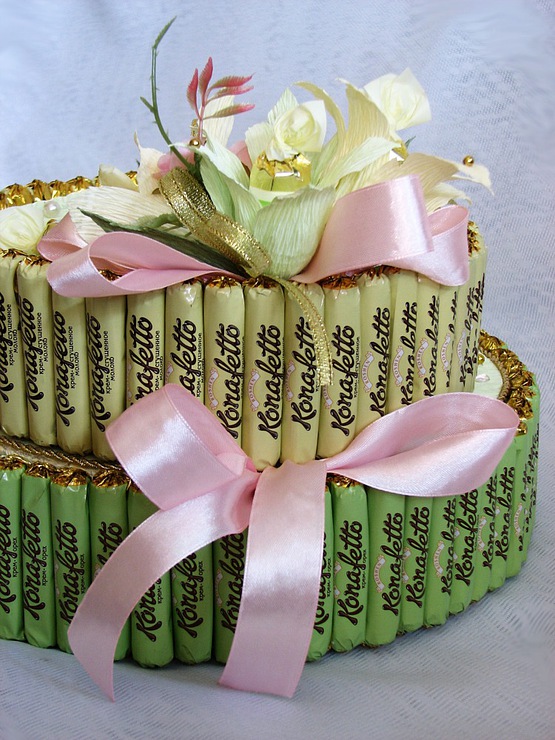 Свадебные букеты и композиции из конфет.