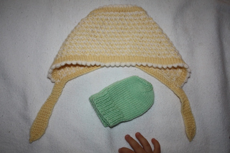 Шапочка-чепчик, теплый, нежный, из спец. детских ниток. Цвета: зеленый, желтый. Ручная работа. Новая. 150 руб