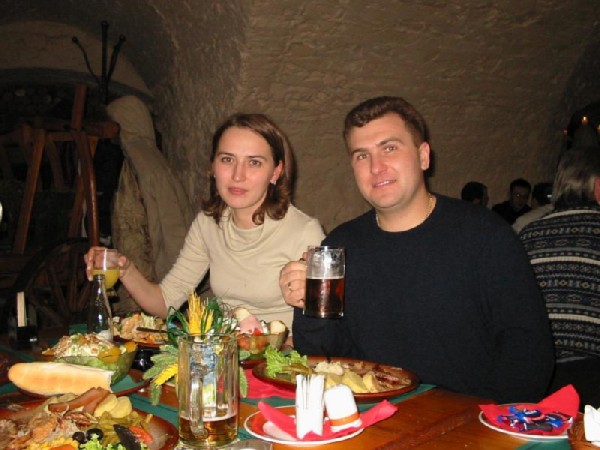 Мы с Серегой в какой-то кафешке . Прага
