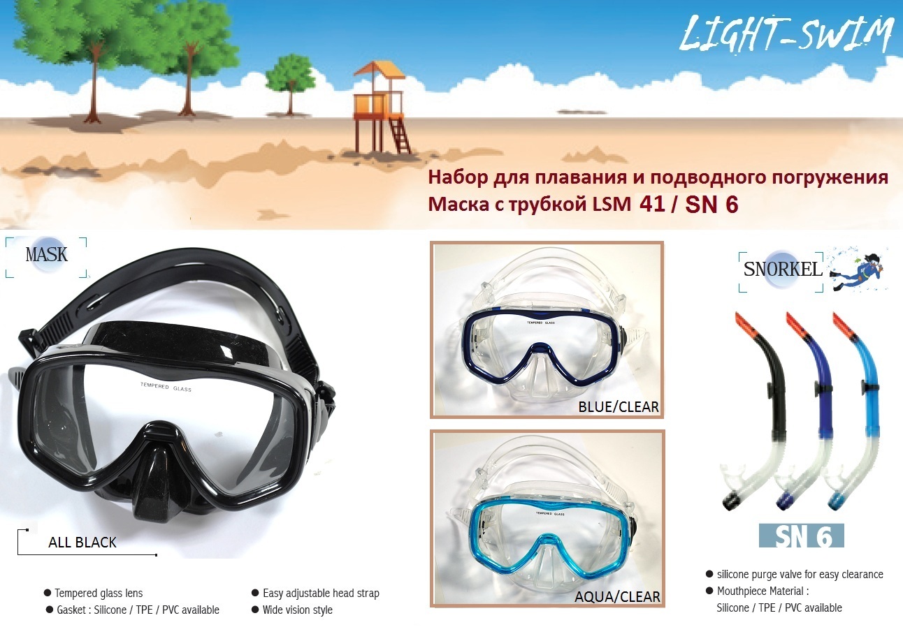 LSM-41 Маска с трубкой д/взрослых, цена 730+15%. Маски,ласты,доска,колобашка для плавания