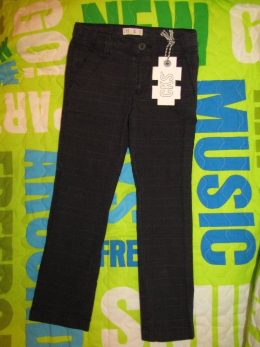 Новые брюки CKS Бельгия. Размер 116 полноразмерные. Очень стильные брюки. Серо-чёрные в модную клетку. Состав хлопок. Заказывала из Голандии и случ. заказала 2 шт одинаковых. Будем носить их в школу.