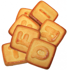 Печенье с рельефным рисунком детской тематики из муки высшего сорта, со вкусом молока.