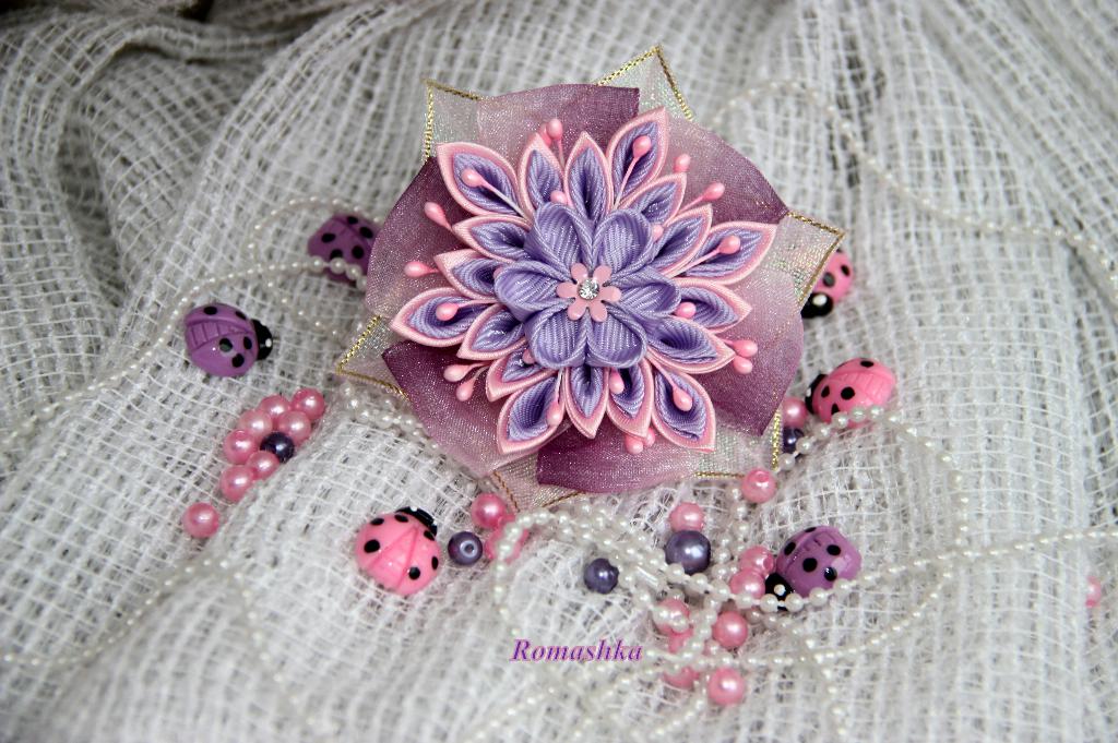 Розово-сиреневый цветок на резинке
