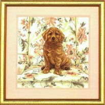 Щенок голдена в кресле