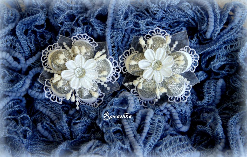 Снежные цветы на резинках (зажимах). Украшения для волос