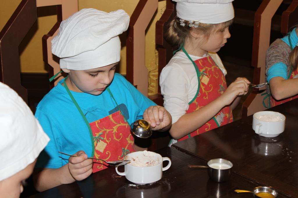 поэтапно дети в муку добавляли какао,тщательно все перемешивая и так далее.