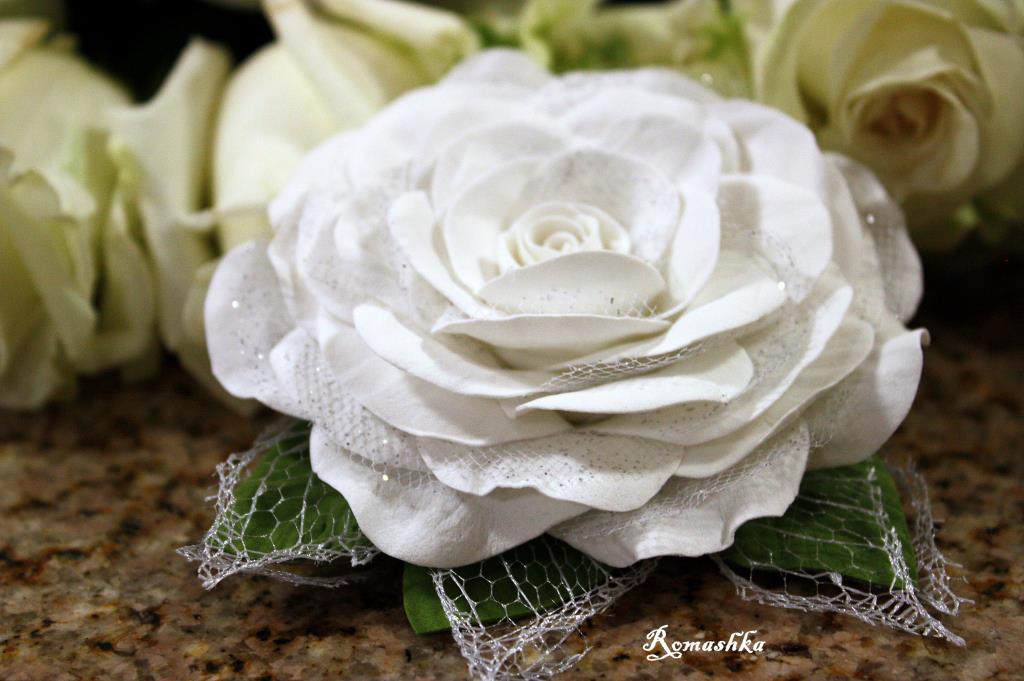 'Снежная роза' на креплени болшь+зажим. Украшения для волос