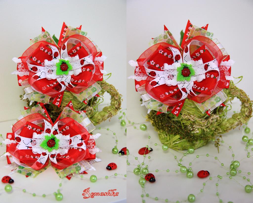 Бантик 'Божьи коровки' на резинках. Украшения для волос
