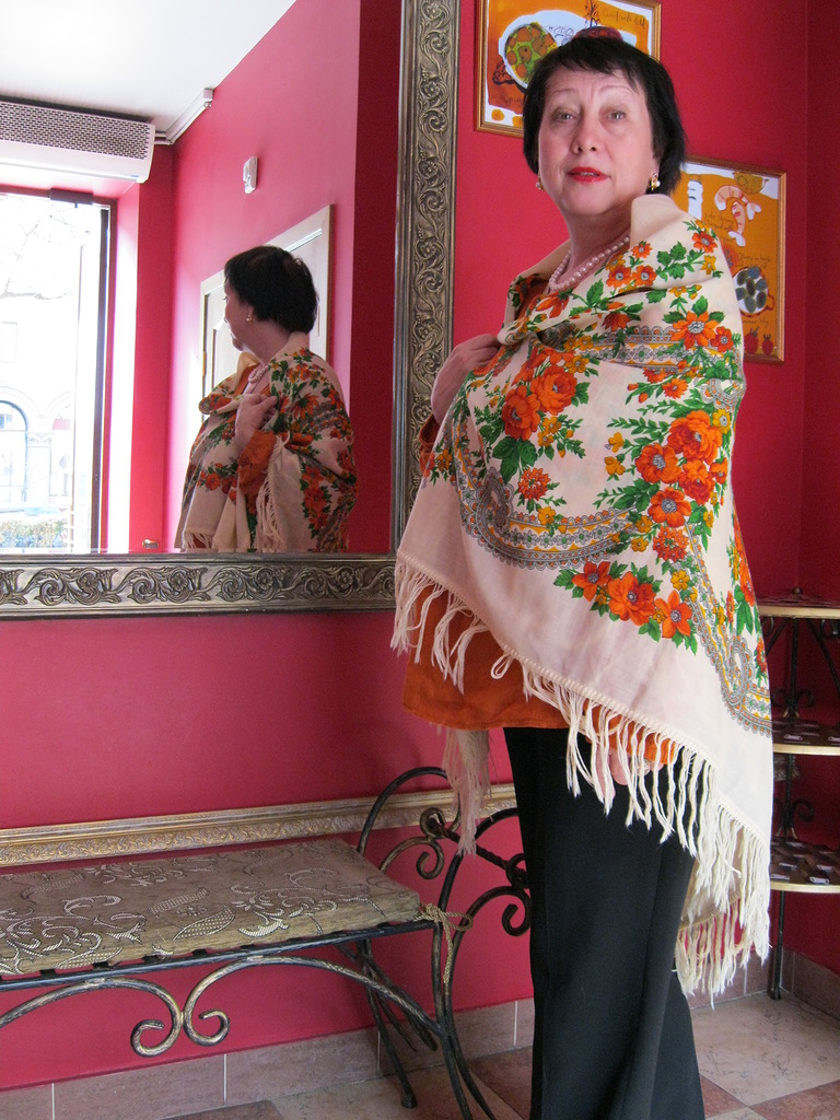 Минск 8 мая, кафе "Золотой гребешок". Шаль "Русский танец", художник Клара Зиновьева08 мая 2013 г.