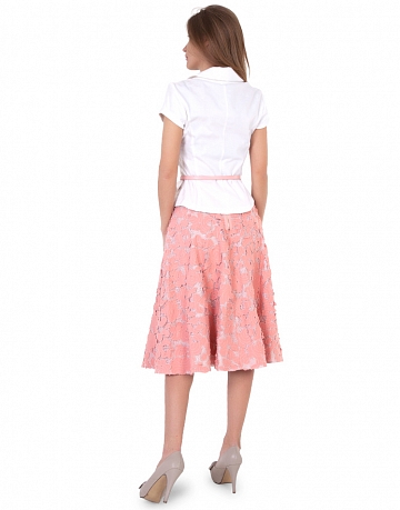 Лазерная резка хлопка и соединение легкими нитями в потрясающе красивый рисунок, делает эту юбку маленьким шедевром. Пояс четко на талии также отсылает нас к силуэту сороковых