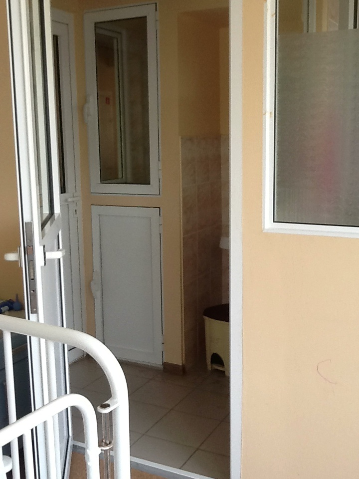 Вот через то маленькое окно- дверцу ( слева) кладут еду со стороны коридора, а ты потом со своей стороны забираеш :))), а по коридору все бегают без масок - умора ))))