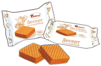 Сочетание хрустящих, аппетитно поджаристых вафельных коржей и натурального варёного сгущенного молока!