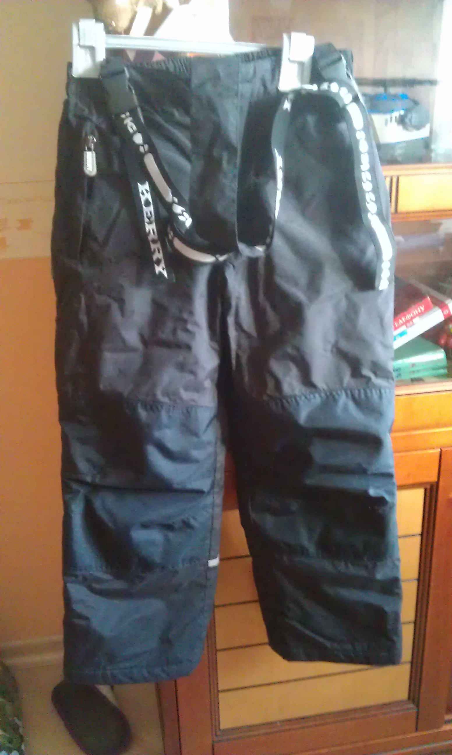 черные брюки размер 134 цвет черный в хорошем состоянии без протертостей на коленках, внизу подкладка чуть порвалось 1 см, можно зашить невидно совсем, утепление- 80 гр.