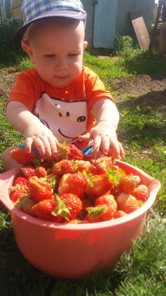 Мой сыночек у бабули в огороде