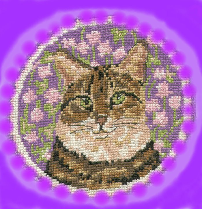 Вышивала моя мама, графический "дизайн" моей дочки. Котяра ждет своей подушки...20 августа 2004 г.